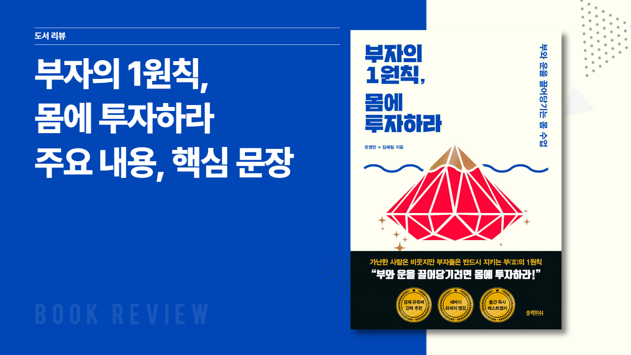 체력이 급격하게 떨어지면서 세상 모든일에 의욕을 잃고 가던 때에 근력의 필요성을 뼈저리게 느끼게 해 주었던 책 "부자의 1원칙, 몸에 투자하라"에 대해 이야기를 나눠보려고 합니다. 이 책은 유영만과 김예림이 공동 저술한 작품으로, 몸에 대한 투자와 그 중요성을 다루고 있습니다. 요즘은 많은 사람들이 재정적 독립과 부를 꿈 꾸지만, 그 과정에서 간과하는 한 가지가 바로 '몸'이라는 사실을 이 책은 다시금 일깨워 줍니다. 부자가 되려면 몸의 건강과 에너지가 필수적이라는 점을 강조합니다. 이 책은 몸과 마음의 건강이 부를 창출하는 데 얼마나 중요한지를 강조하고 있습니다.
