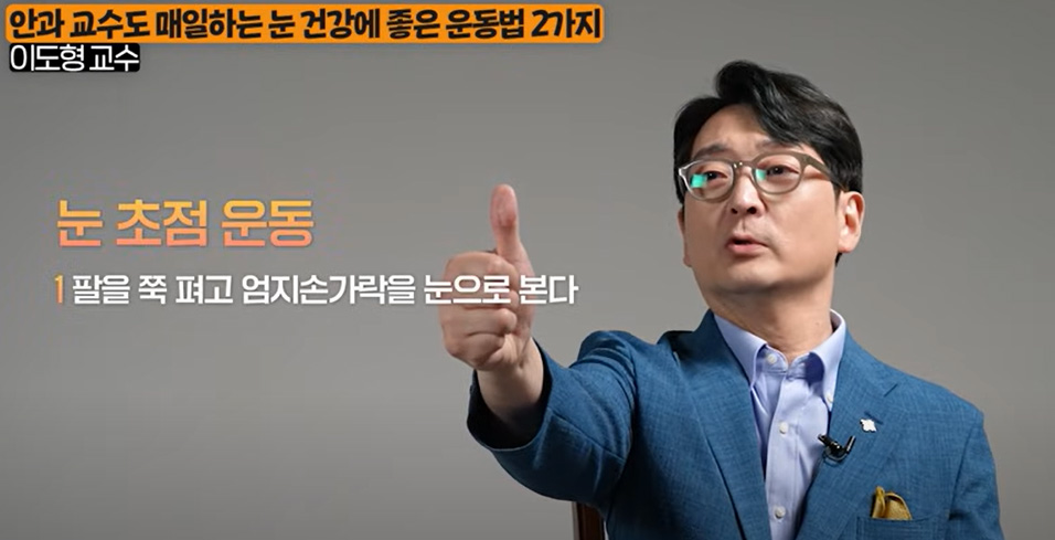 이도형 교수님이 알려주는 눈이 맑아지는 운동법은 눈 조절력을 향상해 주는 '눈 초점 운동'과 눈물층을 안정시켜 주는 '눈 깜빡임 안정 운동' 두 가지입니다.