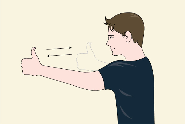 3. 다시 팔을 펴고 엄지를 봅니다.