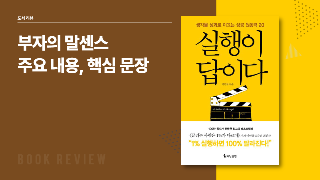 심리학 박사인 이민규 님의 '실행이 답이다'는 현대 사회에서 성공을 이루기 위해 반드시 필요한 실행력에 대해 다룬 책입니다. 이 책은 단순히 이론적인 지식에 그치지 않고, 실제로 어떻게 실행할 수 있는지를 구체적인 사례를 제시하고 있어 내용을 이해하기 쉽게 구성되어 있습니다. 이 책의 주요 내용과 핵심 문장, 그리고 추천 이유에 대해 하나씩 이야기해 보겠습니다.